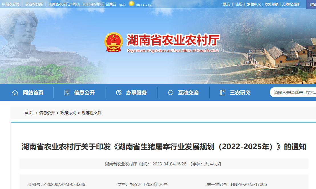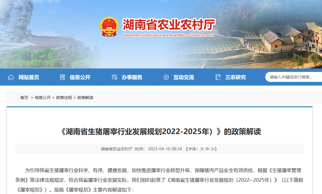 湖南省生猪屠宰行业发展规划2022-2025年)》的政策解读