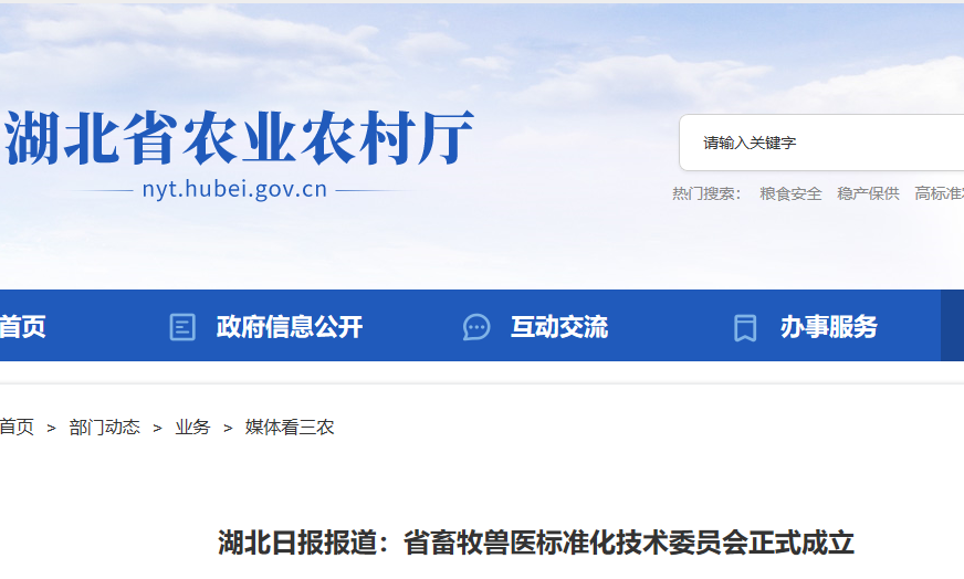 省畜牧兽医标准化技术委员会正式成立 湖北日报讯 (记者刘胜、通讯员谢毅)5月5日,湖北省畜牧兽医标准化技术委员会在武汉市农科院正式成立。该委员会主要负责湖北省畜牧养殖、兽医防疫、兽药饲料和屠宰加工等领域地方标准制订工作。第一届委员46名,分别来自大专院校、科研机构、管理部门、生产经营单位。中国工程院院士陈焕春担任委员会主任。湖北是养殖大省,近年来畜牧业综合生产能力稳步提升,畜产品供应保障有力,2022年,