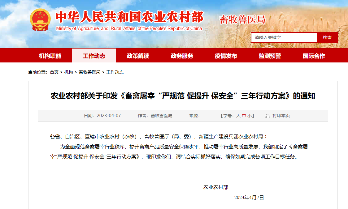畜禽屠宰“严规范 促提升 保安全”三年行动方案