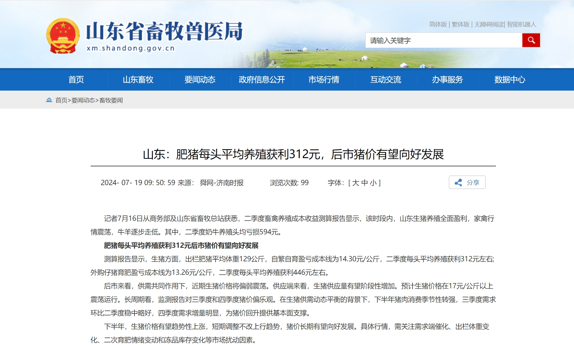 山东:肥猪每头平均养殖获利312元,后市猪价有望向好发展