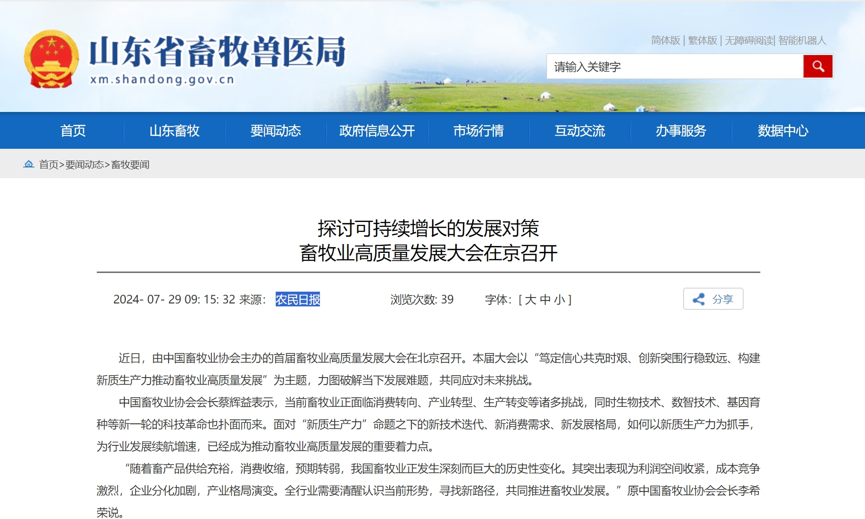 探讨可持续增长的发展对策 畜牧业高质量发展大会在京召开