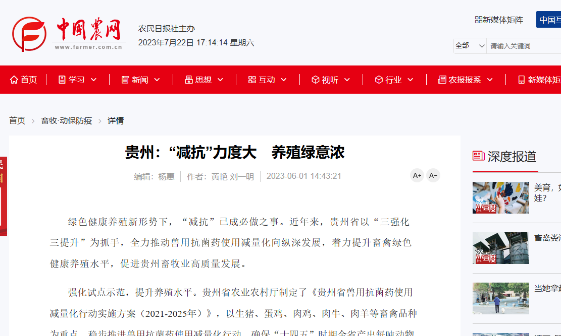 贵州:“减抗”力度大 养殖绿意浓绿色健康养殖新形势下,“减抗”已成必做之事。近年来,贵州省以“三强化三提升”为抓手,全力推动兽用抗菌药使用减量化向纵深发展,着力提升畜禽绿色健康养殖水平,促进贵州畜牧业高质量发展。强化试点示范,提升养殖水平。贵州省农业农村厅制定了《贵州省兽用抗菌药使用减量化行动实施方案(2021-2025年)》,以生猪、蛋鸡、肉鸡、肉牛、肉羊等畜禽品种为重点,稳步推进兽用抗菌药使用减量化行